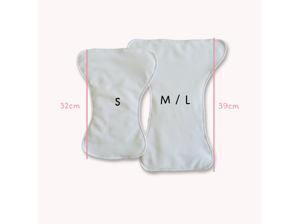 | Funkce: | Tvarovaná denní vkládací plenka do vrchních PUL kalhotek velikostí M a L |