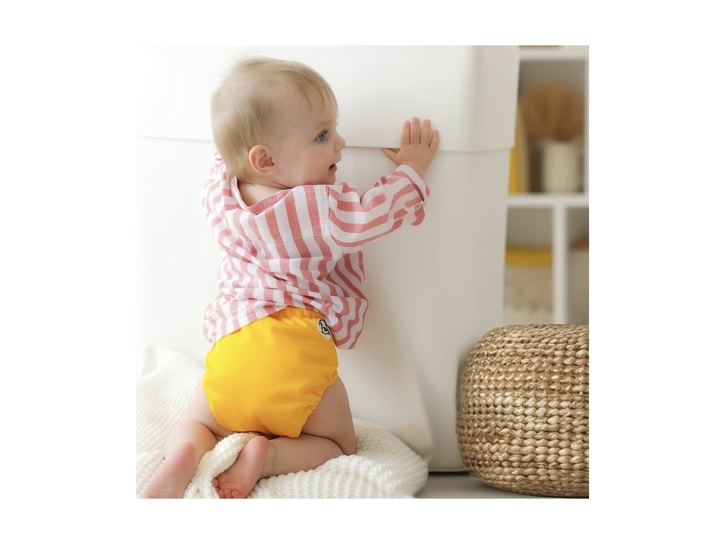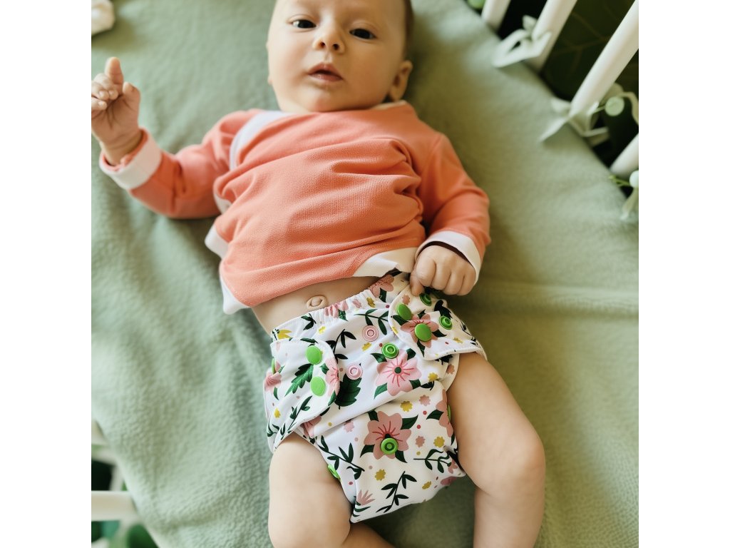 Vnitřní vkládačku jednoduše zapnete na miminko a přes ni natáhnete vrchní PUL kalhotky.