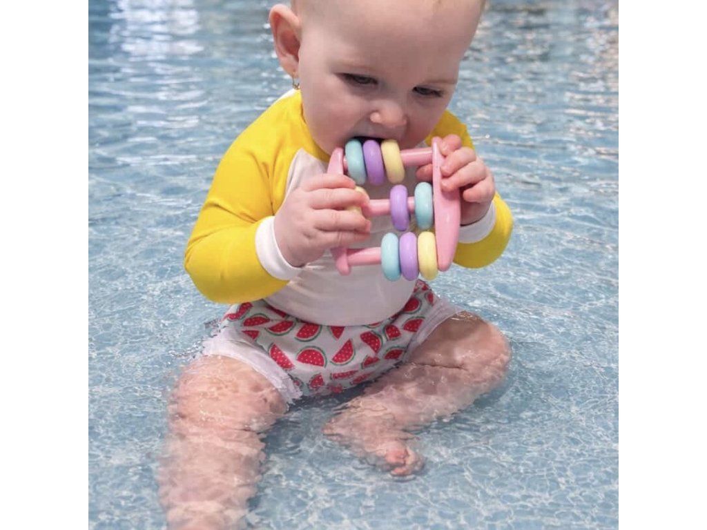 💚 Elastické lemy: bezpečně těsní, netlačí, umožňují děťátku volný pohyb ve vodě a na pláži