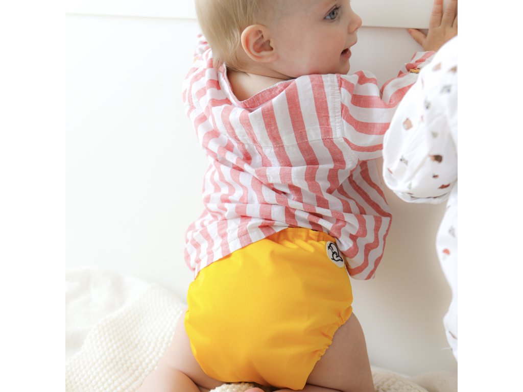 Vnitřní vkládačku jednoduše zapnete na miminko a přes ni natáhnete svrchní PUL kalhotky. Ty stačí mezi přebaleními pouze provětrat nebo opláchnout – proto je v sadě naleznete méně než vkládaček. Uschnou rychle a jsou připraveny k dalšímu použití.