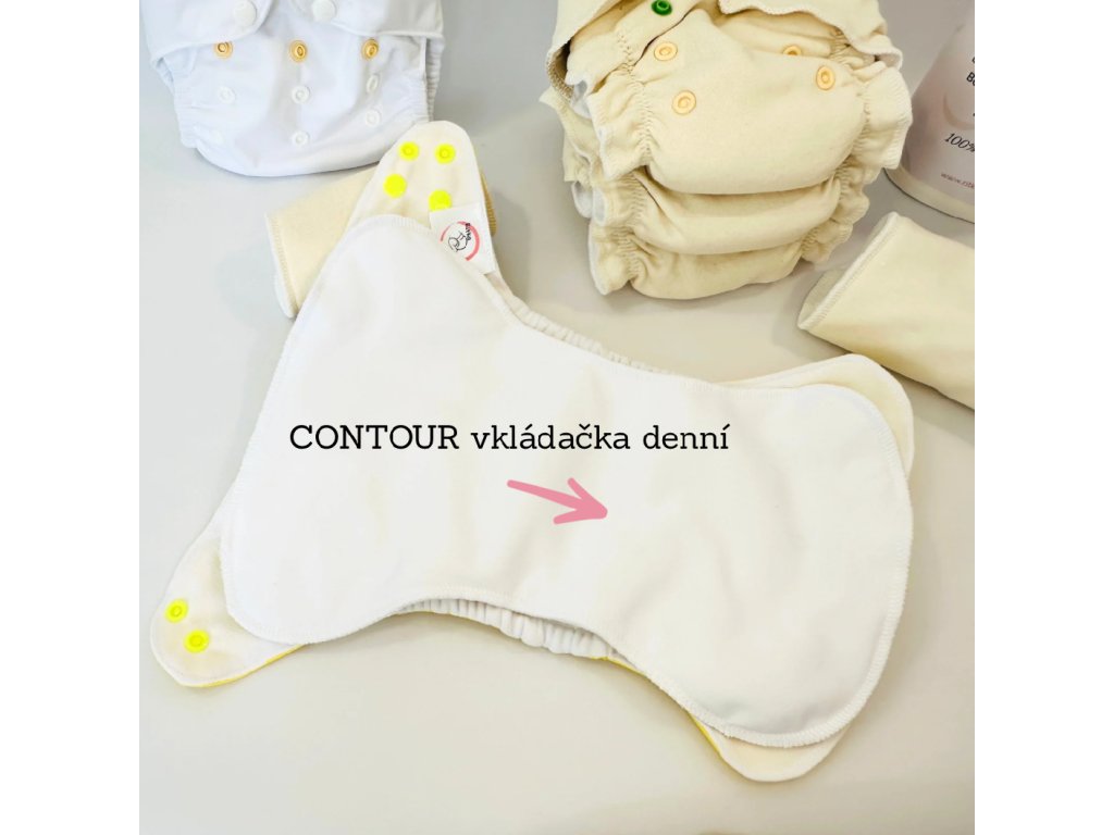 | Složení sady Kojenec 4-12 měs. (6-14kg): | 1x Vrchní PUL kalhotky M, 1x Vkládačka do PUL kalhotek M, 1x CONTOUR vkládačka, 1x BOOSTER, 3x separační bamboo ubrousek |