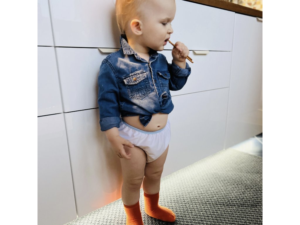 Naše kalhotky jsou skvělé po celou fázi přebalování. Můžete je použít i při cvičení s děťátkem, jako je rehabilitace nebo Vojtova metoda. V létě po koupání svlékněte dítě z mokrých plavek do tréninkových kalhotek.